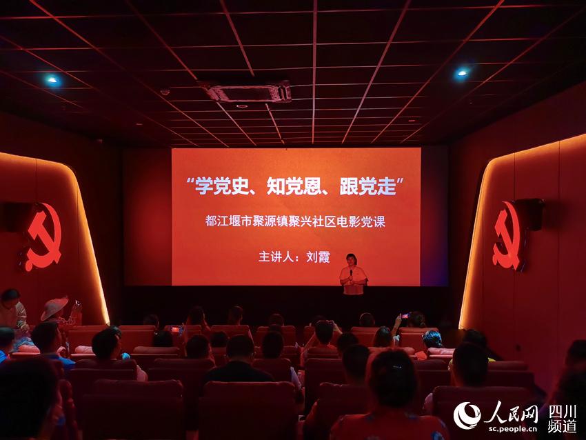 9日下午4時,這所“鄉(xiāng)村電影黨校”正式開課,聚源鎮(zhèn)聚興社區(qū)黨支部書記劉霞為社區(qū)黨員群眾上了第一堂電影黨課。以后,聚源鎮(zhèn)黨委、聚源鎮(zhèn)19個村和社區(qū)的黨支部,將陸續(xù)在這里開展主題黨日活動。